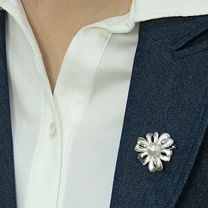 母の日 ブローチ 花 パール 真珠 南洋白蝶真珠 ホワイト系 直径10mm 白蝶貝 花モチーフ SV シルバー 送料無料 フォーマル アンティーク調