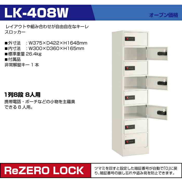 搬入設置料金込 エーコー EIKO リゼロ・ロックシリーズ LKロッカー LK-408W 設置無料 重量26.4kg ロッカー キーレスロッカー|貴重品入れ 8人用 かぎ付き おしゃれ 事務用品 棚 鍵付きロッカー ダイヤルロック エイコー シンプル オフィス 鍵付き ダイヤル 収納 収納ロッカー|